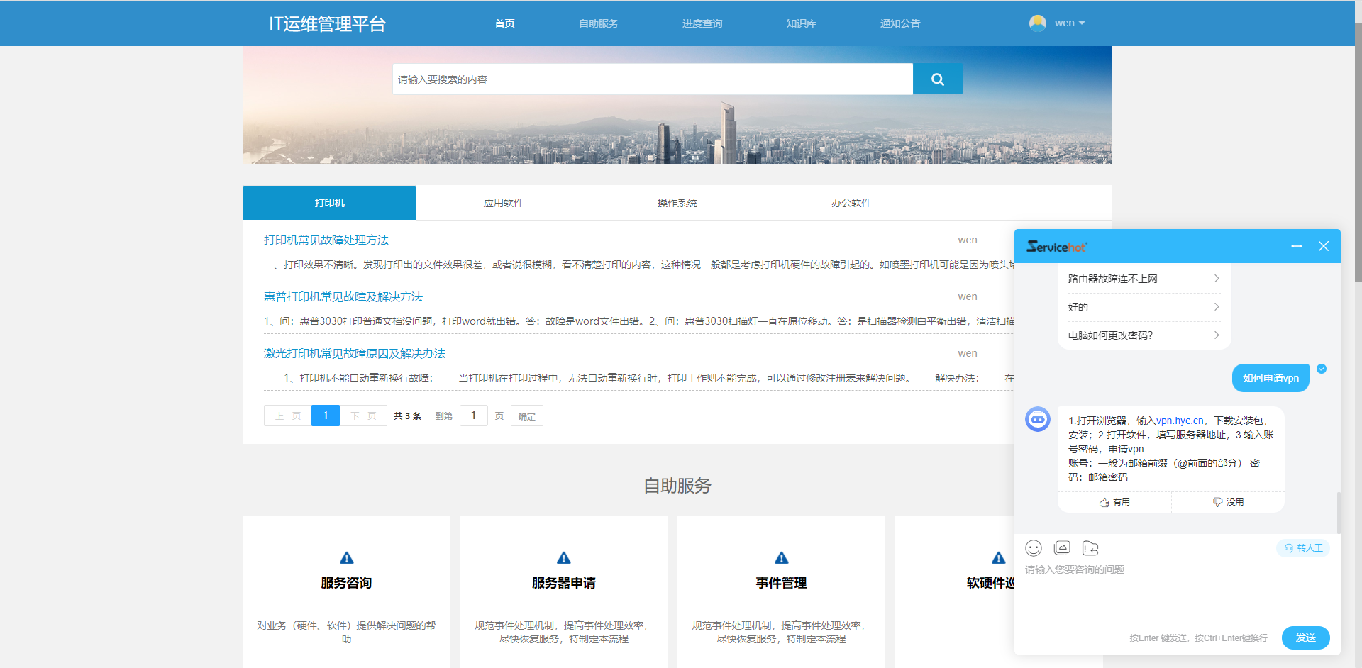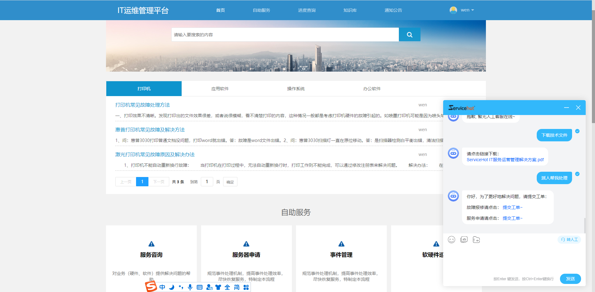 ServiceHot AI機器人的接入將重塑傳統服務臺,提供智能與自動的服務,實現上述AI為it服務管理帶來的益處,提供更加完善的it服務運營管理解決方案。