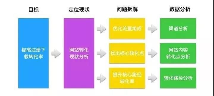 采用線上營銷的方式,獲取的用戶最終落在我們網(wǎng)站或者 APP上,我們的轉(zhuǎn)化目標(biāo)是讓新用戶注冊或者下載。