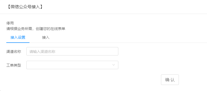選擇微信公眾號(hào)組件,按需填寫渠道名稱,工單類型等,按確定生成渠道。