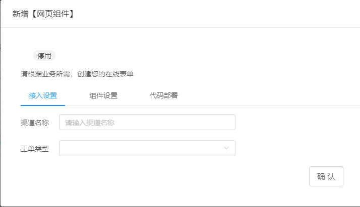 選擇網(wǎng)頁組件,按需填寫渠道名稱,工單類型等,按確定生成渠道。