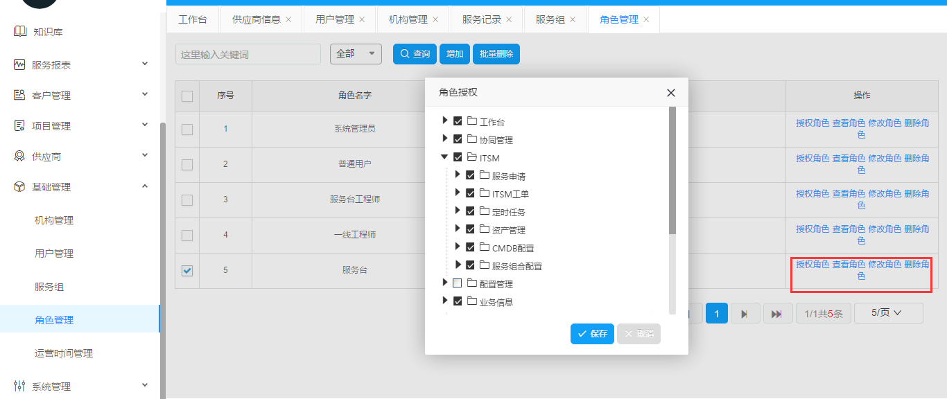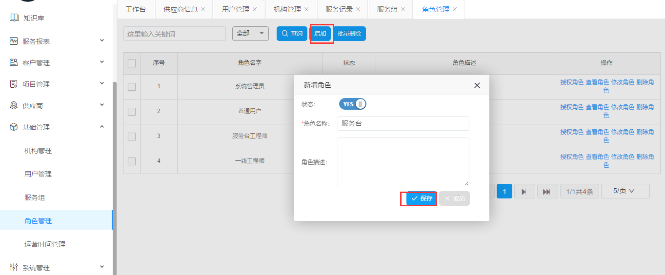 授權(quán)、查看、修改、刪除角色