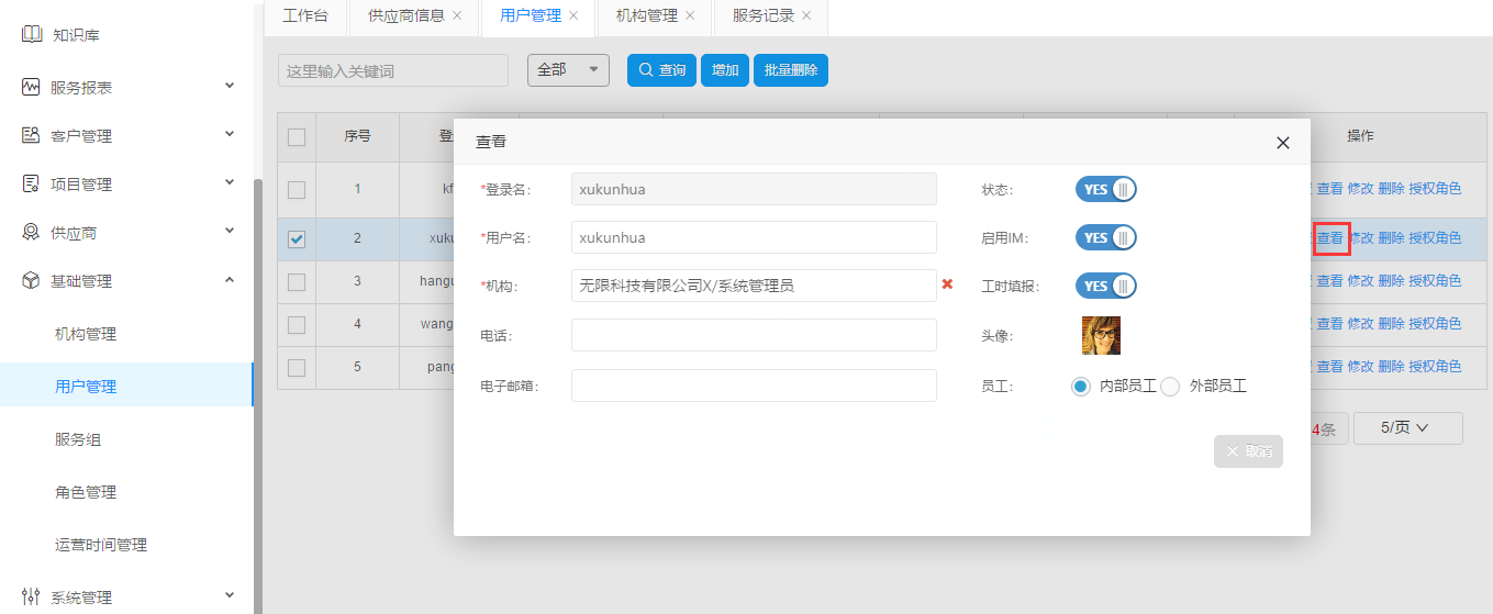 選擇一個(gè)用戶,點(diǎn)擊查看。