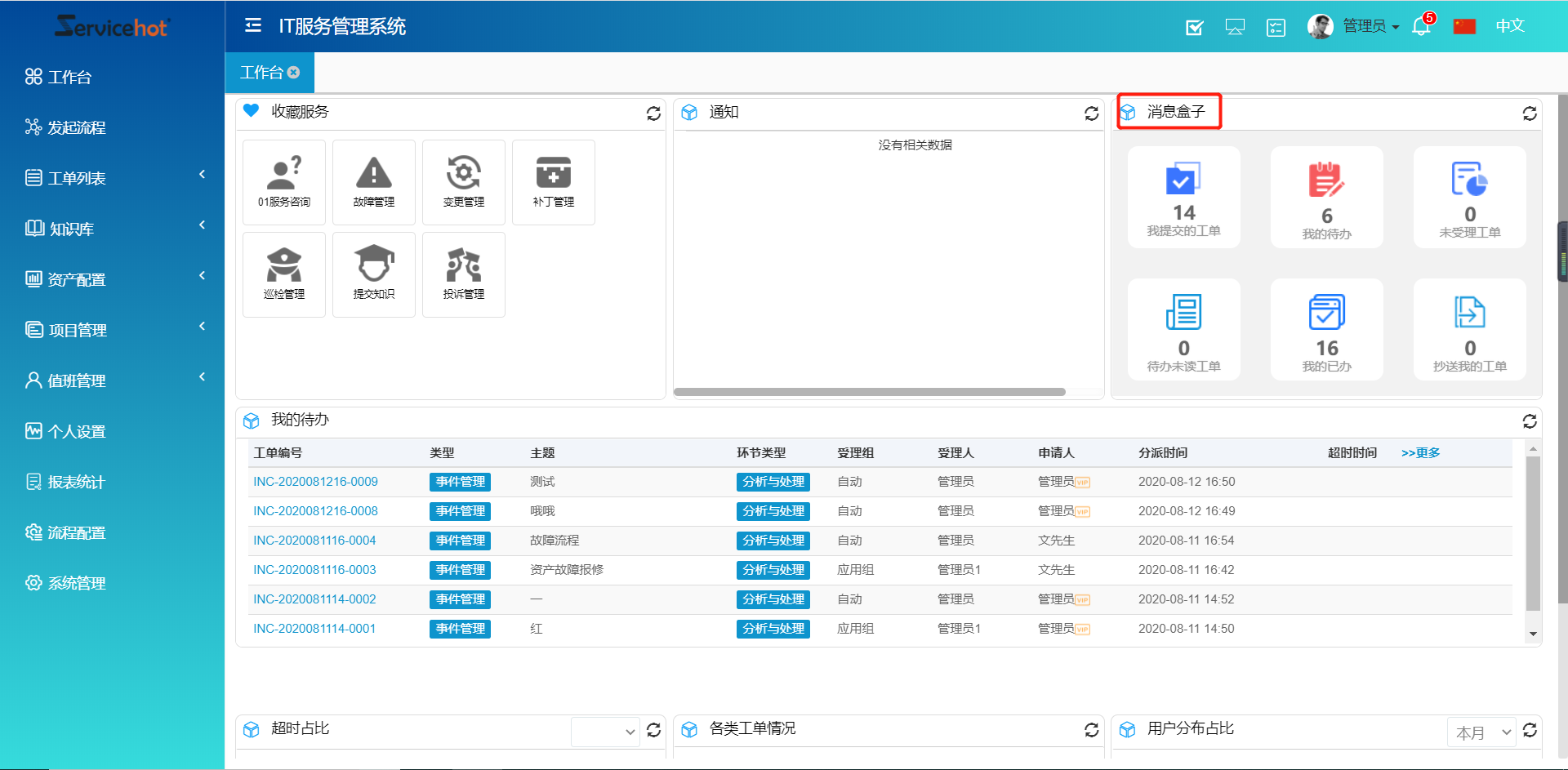用戶可通過消息盒子快速查看工單信息