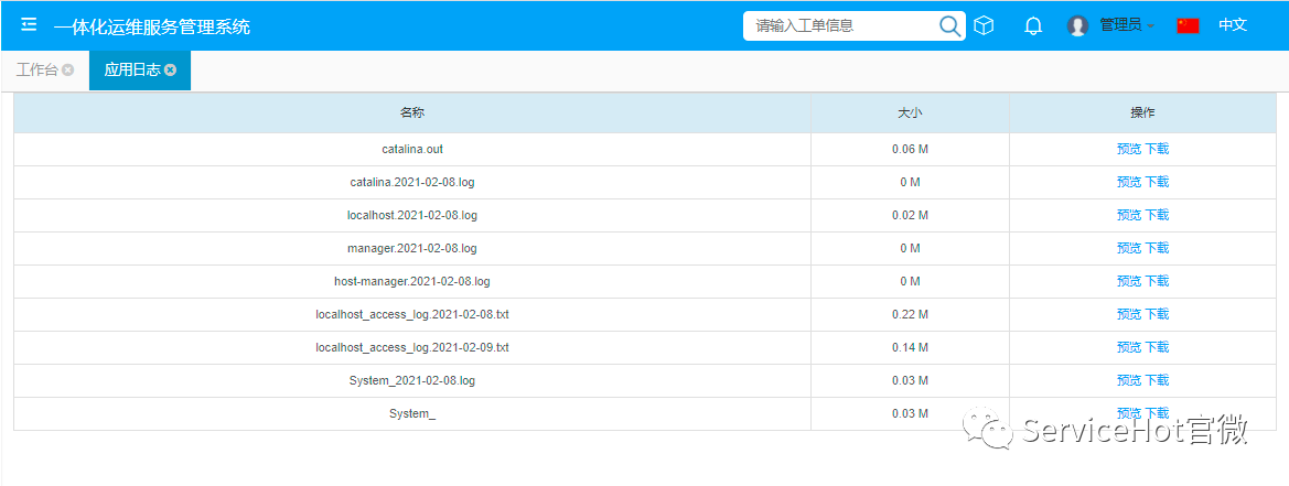 系統怎么應用日志管理功能,系統管理員在系統管理頁面,可以直接查詢和下載服務器最新關鍵日志文件,便于對服務器進行管理。
