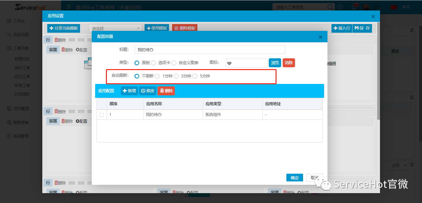 Servicehot產品為不同角色用戶提供個性化的工作臺,允許用戶自由配置自己的工作臺和待辦展示,本次優化新增自動刷新功能,讓工作臺展示數據更加精準。