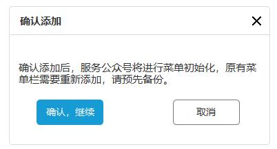 在添加微信公眾號(hào)渠道的時(shí)候,用戶最終確認(rèn)添加,會(huì)彈出信息框提示。