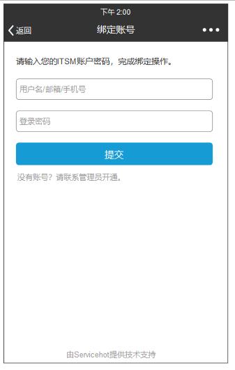 通過ITSM賬戶密碼的形式,輸入驗(yàn)證,進(jìn)行賬戶綁定。