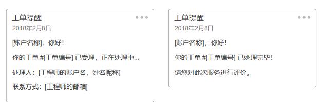 微信渠道缺少郵件通知工單更新的情況。加入通過公眾號(hào)通知形式,可以直接收到通知了。