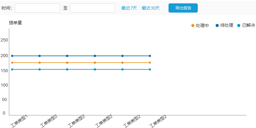 - 統(tǒng)計(jì)折線圖,可以展示不同的工單類型的不同處理狀態(tài)。