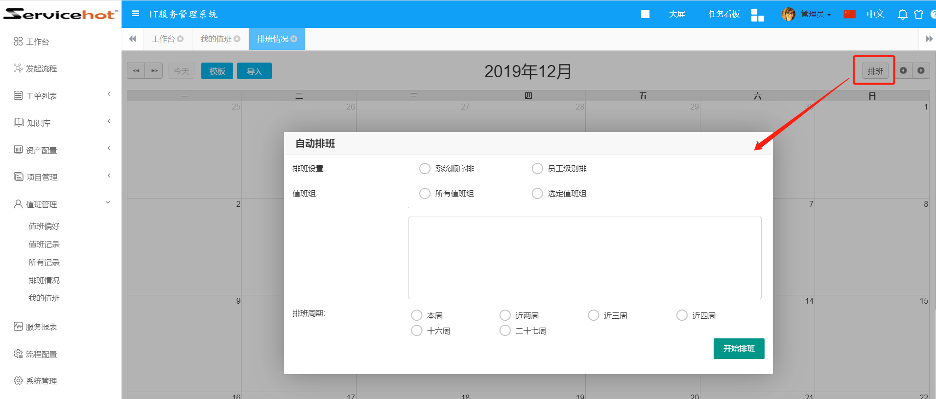 點擊頁面右上角排班,彈出字段頁面選擇字段后點擊開始排班。