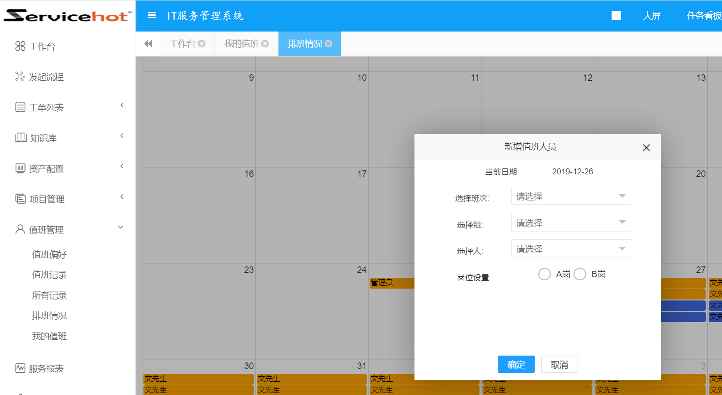 工程師可隨時知道自己的值班情況,管理員可對工程師進行排班。