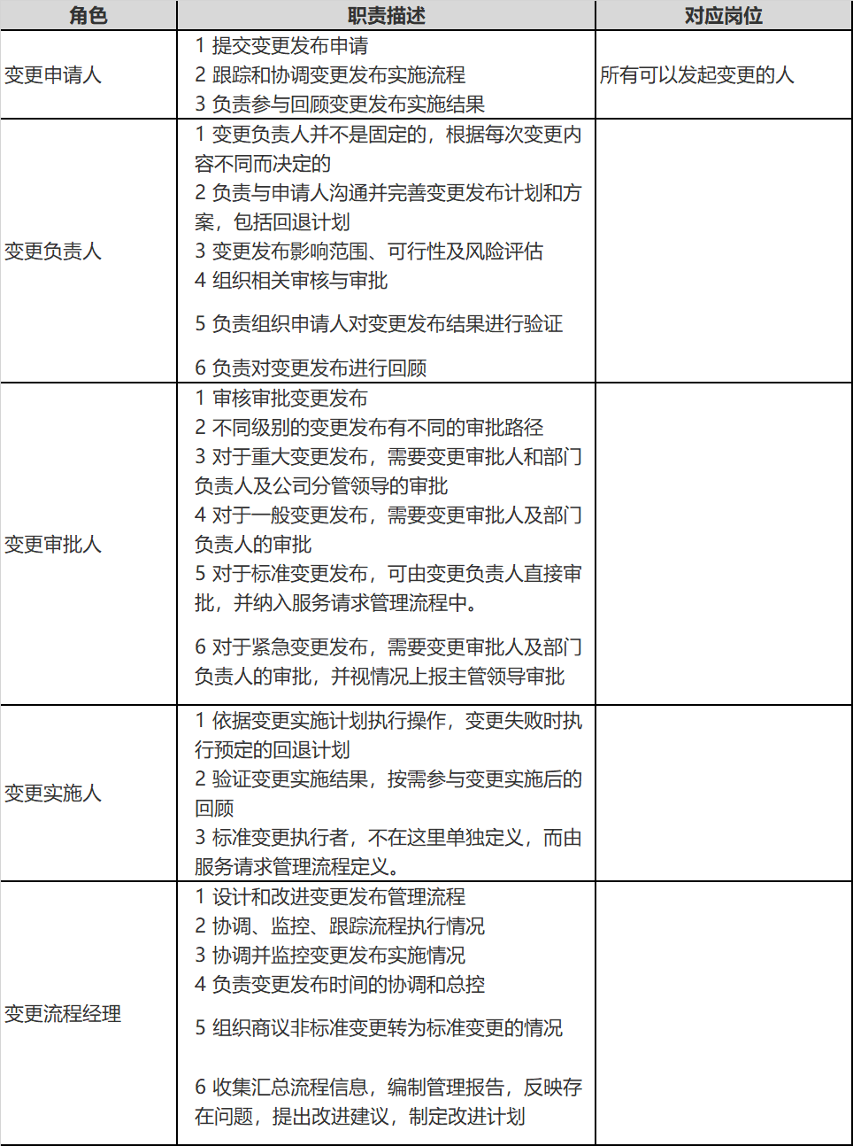 7、變更管理流程中涉及的主要角色職責(zé)