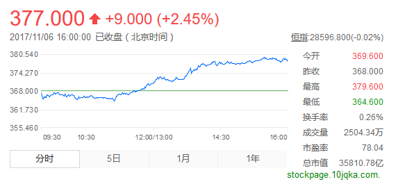 騰訊控股昨日股價再創(chuàng)新高,收盤時漲2.45,股價達377港元,市值則為3.58萬億港元。