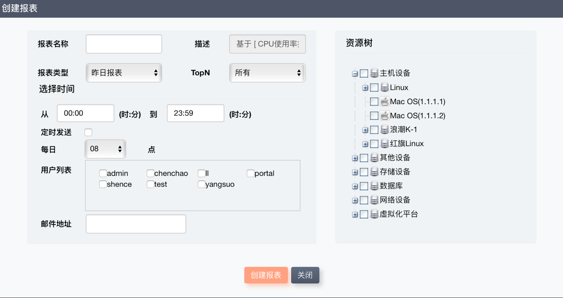 運(yùn)維監(jiān)控系統(tǒng)內(nèi)置二十多套統(tǒng)計(jì)報(bào)表默認(rèn)模板,管理員可以指定統(tǒng)計(jì)報(bào)表的時(shí)間區(qū)間,并選擇指定將哪些資源加入到統(tǒng)計(jì)報(bào)表中。
