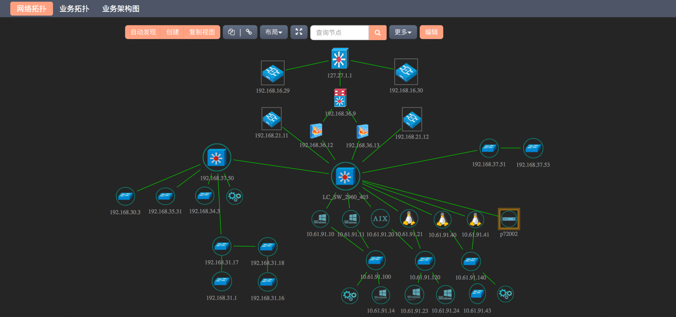 底層的設(shè)備故障直接影響到上層業(yè)務(wù)的運(yùn)行,通過業(yè)務(wù)拓?fù)湟晥D,解決了故障定位不清晰,層級依賴不清晰的問題,為“自上而下”排查故障提供依據(jù);