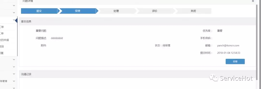郵件發(fā)送成功后,受理人就會(huì)在ITSOM系統(tǒng)中收到一條新創(chuàng)建的工單。