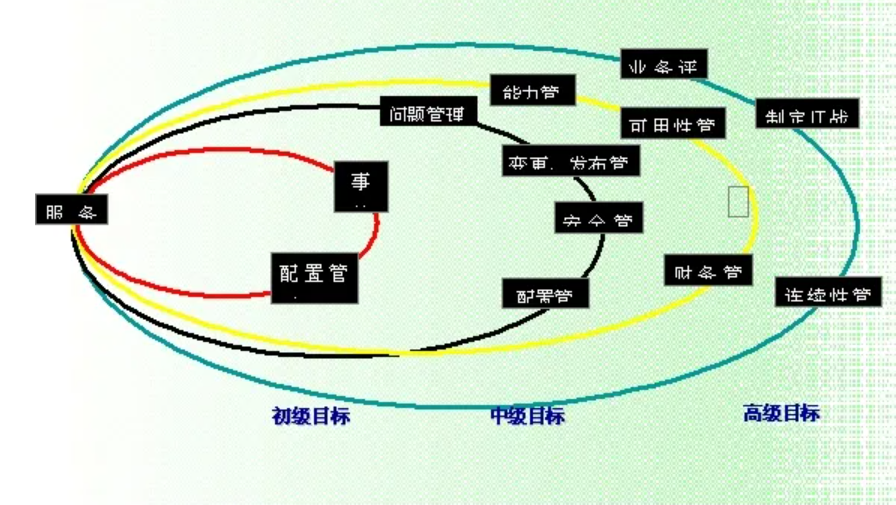 中期的目標(biāo)是建立問題管理、變更管理、發(fā)布管理、安全管理、繼續(xù)優(yōu)化或強(qiáng)化配置管理以及ITIL Service Delivery中部分的管理流程。